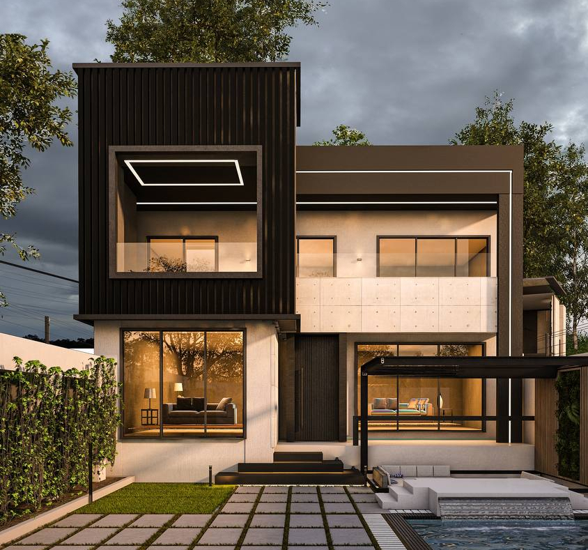 محوطهسازی ساده اما منظم در حیاط، به همراه استخر و فضای نشیمن بیرونی، تجربهای کامل از زندگی مدرن و آرامشبخش را برای ساکنان فراهم میآورد